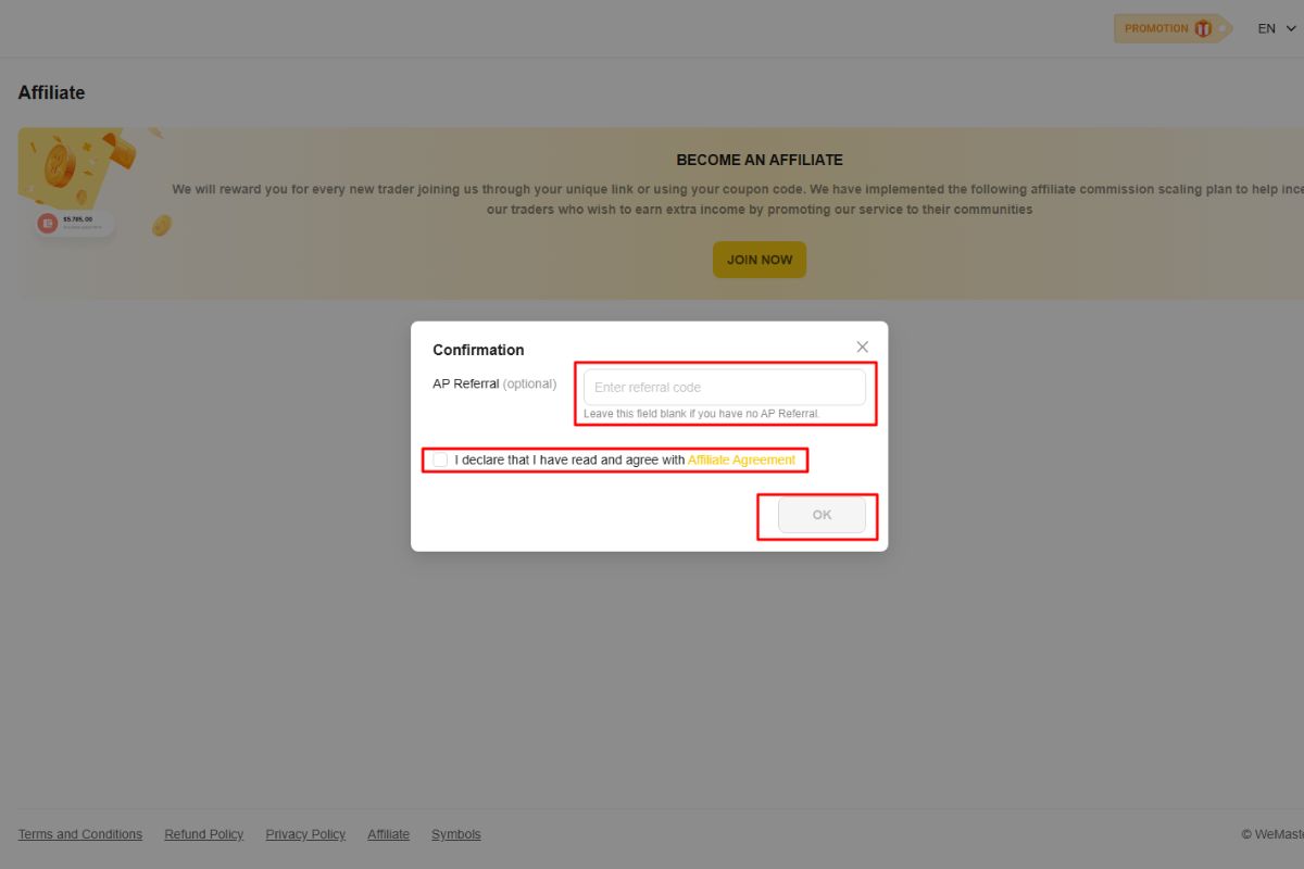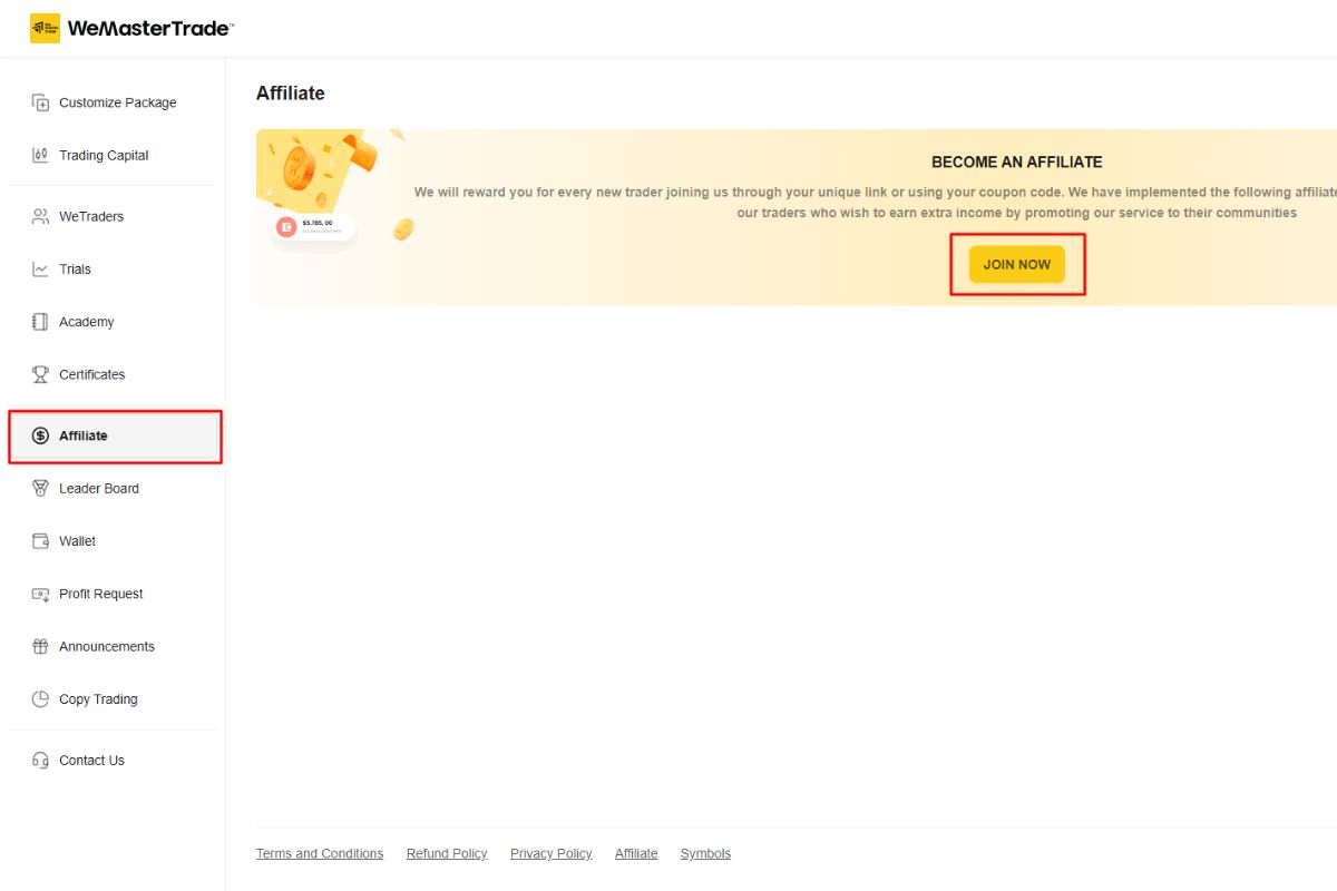 Joining the WeMasterTrade Partners Program is simple and can be completed in just a few steps through your dashboard.